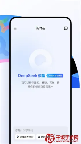-打开 QQ 浏览器 App,在顶部搜索栏输入 “DeepSeek”(支持语音输入)。