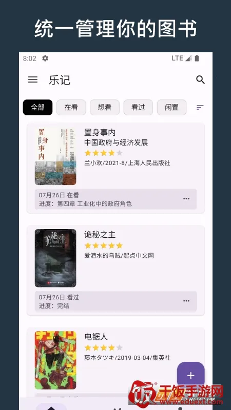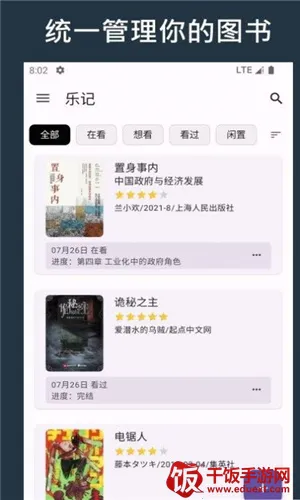 乐记是一款实用性颇强的生活服务软件。它能免费使用且为最新版本,可添加书籍与影音视频。能对不同书籍分类管理,方便迅速查找,还能自由添加标签、出版社名称,查询功能智能。它优势显著,能直接记录阅读时间且永久保存,添加方式简单还有详细说明,能在线记录阅读心得。其特点突出,可依个人阅读习惯新建阅读标签,能查看详细历史阅读记录,有不错的标记工具。亮点也不少,能一键导入电影统一管理,阅读记录详细可看进度,能快速将喜爱书籍加入书单并分享。软件管理功能稳定智能,可添加多种书籍和影视资源,导入速度快、占用内存小,支持多种搜索模式,节省用户搜索时间,是款值得推荐的软件。