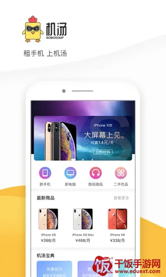 机汤租机平台是数码产品租赁服务平台,与芝麻信用合作,信用免押。提供手机、电脑、无人机等租赁,有多种租期可选,下单顺丰包邮,24小时发货,客服无休,新用户有专属礼包券。
