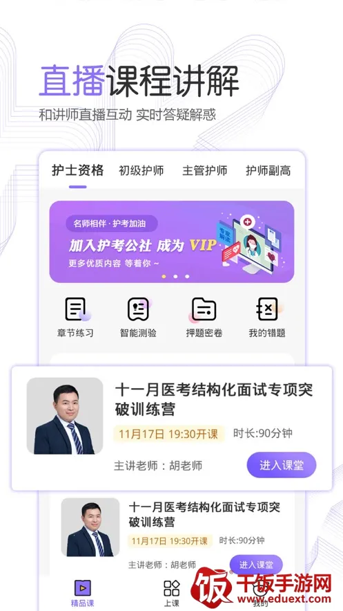很多准备护考的小伙伴会问“护考公社胡老师真的假的”。护考公社是一款超棒的医护考试软件。它功能强大,有海量真题,能让大家从量变到质变,透过现象剖析护考本质。还有章节练习,优秀试题覆盖所有章节考点;智能测验可全真模拟考试,把握考试精髓。视频培训有权威专家完整成体系的课程讲义,支持离线下载,能随时反复观看。名师直播精讲,在线互动解读考点难点。这里能解决大家备考资料不全、复习没方向、不懂考点等问题。能让你随时随地无纸化备考复习,节约时间。不管是想了解考试通知,还是全面学习护理知识,又或是和小伙伴交流进步,它都能满足。有了护考公社,备考更轻松,助力你顺利通过护考!