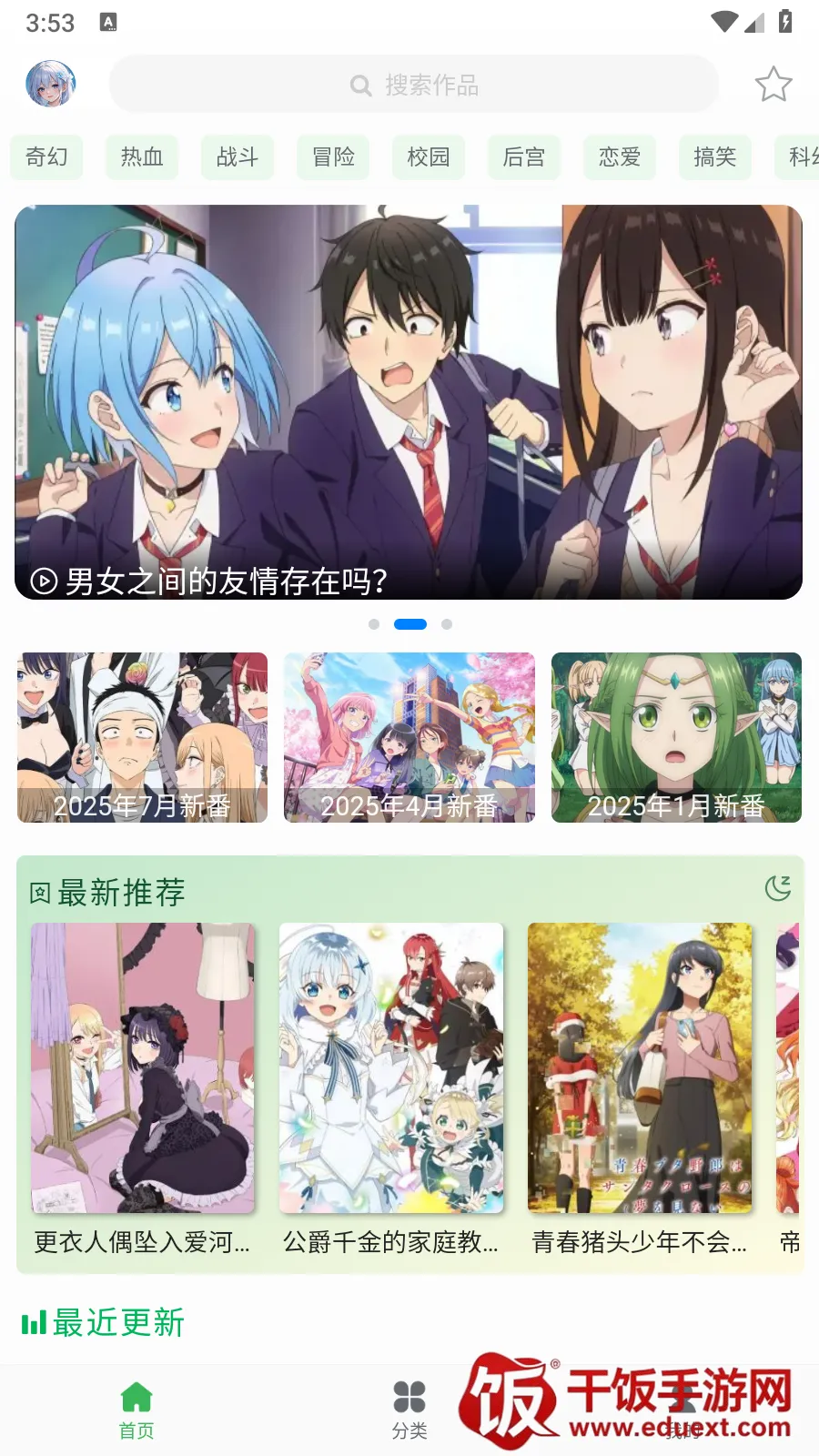 2. 界面简洁直观,分类清晰,用户可快速筛选出感兴趣的动漫作品。