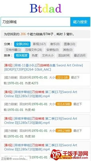 1、打开btdad搜索引擎软件,主界面有众多磁力资源。