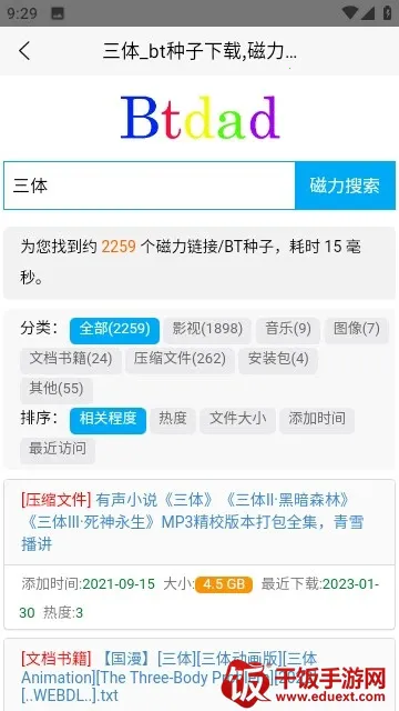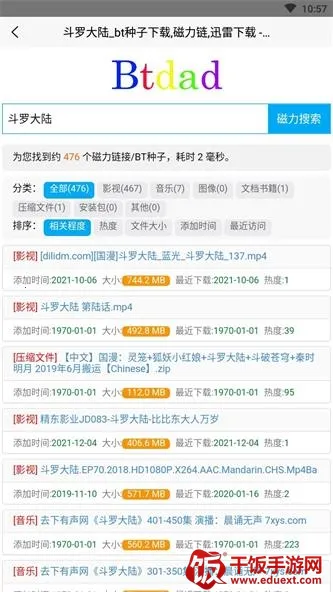 btdad是功能强大的磁力搜索工具app,支持全网电影音乐软件资源搜索下载。能无痕浏览保护隐私,在线播放电影。资源丰富类型全,搜索速度快,还有文件管理等优势,满足多样需求,安全便捷。