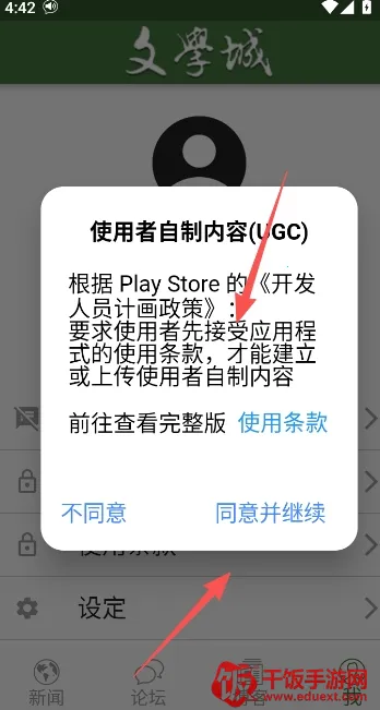 3、完整查看使用者自制内容(UGC)内容部分,点击同意并继续。