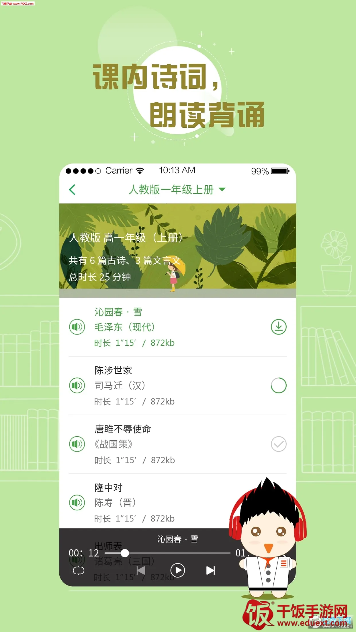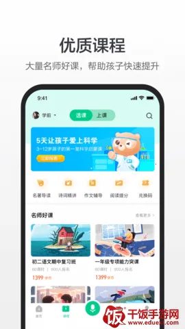 3. 功能实用,提供拍照朗读、字词听写、诗词朗诵、笔顺播放、学写汉字、译文对照等工具,还有谜语、成语接龙、古诗词挑战等益智游戏,提升学习趣味性。