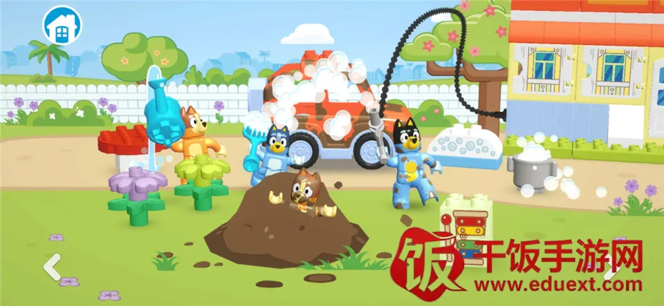 在这里,你可以和布鲁伊一家互动。比如在花园茶会免费与布鲁伊妈妈和Chattermax一起举办茶会,还能经营泥巴派餐厅等;开车去兜风时和爸爸一起出发看大花生,收拾行李甩掉灰发漫游族创作车窗风景游戏。