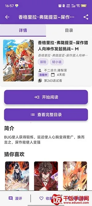漫趣星球是一款备受漫画爱好者青睐的平台。它拥有大量漫画内容,全版权阵容与多家知名漫画出版社和工作室正版合作,确保内容丰富合法且更新快速,能让用户第一时间追看最新剧情。其智能引擎基于用户行为分析喜好,每日生成推荐书单,编辑策划的主题书单也助用户发现好作品。专为漫画阅读优化的翻页效果、画面渲染和加载速度,支持多种阅读模式,在任何网络环境下都能带来流畅清晰的观看体验。分类功能细致全面,搜索方式多样,还有贴心的夜间模式保护眼睛。在这里,用户能通过专属讨论区、实时弹幕功能与其他漫迷互动交流,加入兴趣小组结交志同道合的朋友,尽情享受漫画阅读的乐趣。