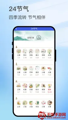 3.在24节气板块,能了解每个节气对应的日期和相关习俗文化。