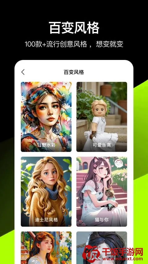 2. 风格多样:具备诸多现成风格模板,像复古、清新、油画等,点击即可切换,随时享受不同风格。