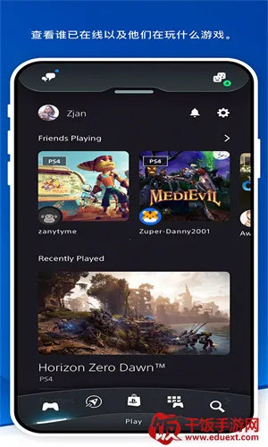 PlayStation是索尼为PS游戏用户打造的社区,即PSapp。可下载游戏,与主机配对,资源存游戏库。支持港服账号登录,能了解资讯、查看好友、语音聊天、邀请共玩,还有诸多便捷功能与亮点。