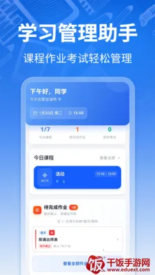 3、整合管理:整合课程表、作业追踪、考试规划等多种功能,将学习相关安排集中收纳。