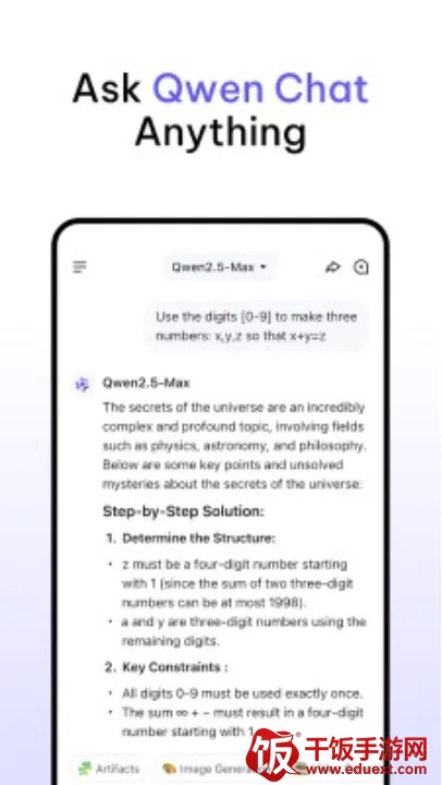 Qwen Chat2026是一款手机智能软件,可作专业智能管家。能解答学习问题,调用网络教学数据。有持续学习等功能,亮点是响应快、兼容好、体积小,特色是能打发无聊、对网速要求低且加密隐私,界面简洁易上手。