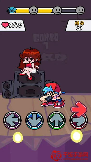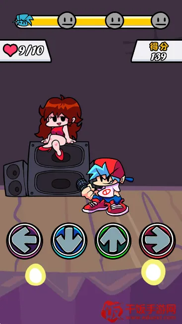 嘿,想知道黑色星期五之夜节奏对战咋玩吗?这是一款超有趣的下落式音游闯关游戏。玩法简单易懂,点击左侧上下键选故事模式,再点右侧A键确定。左下角方向键是打击按键,右侧能调难度,选好后点A键就开始啦。进入音乐对局,等顶部图标重合,按右下角方向键点亮,底部绿条集满就胜利过关。