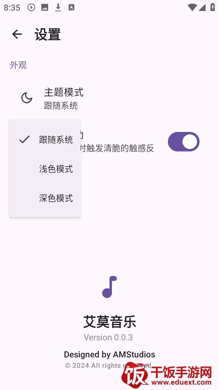 艾莫音乐是一款小众好用的音乐 APP,想听的基本都能找到,而且全部免费在线收听。戴上好耳机,能听到很多其他 App 被压缩掉的细节,艾莫音乐歌词完美匹配,无论是热门流行还是冷门小众歌曲,都能找到准确的歌词。在播放界面和整个 App 内,没有任何形式的弹窗广告,用户可以收藏喜欢的歌曲并建立歌单,支持多种播放模式任你选择。软件内容无需会员就能免费畅听所有歌曲,彻底打破付费壁垒。确保第一时间更新最新专辑热门单曲,让你始终站在音乐潮流的前沿。挖掘海量老歌小众佳作,保证曲库的丰富度与全面性,满足不同年代不同口味用户的多样化需求。能创建本地歌单,实现线上线下音乐资源的无缝融合,随时随地自由切换听歌模式。软件亮点配备专业级音频解码技术,致力于还原每一个音符的细腻质感,让你仿佛置身顶级音乐会现场。你还可以手动创建编辑歌单,自由添加或移除歌曲,将喜爱的音乐按照自己的意愿分类整理。听歌时,精美的歌词界面同步显示歌词,不仅排版美观,字体大小颜色均可根据个人喜好调节。搜索结果不仅呈现精准匹配的歌曲,还会贴心附上相关的专辑歌手介绍以及相似风格歌曲推荐。怎么切换主题点击右上角的设置。选择主题模式。你可以选择深色或者浅色主题等。怎么听歌在本站下载软件进入,可以直接点击搜索框进行搜索。输入你想听的歌手或者歌曲名字,就会出现相关作品。点击即可进行播放。还可以设置循环播放等播放模式。