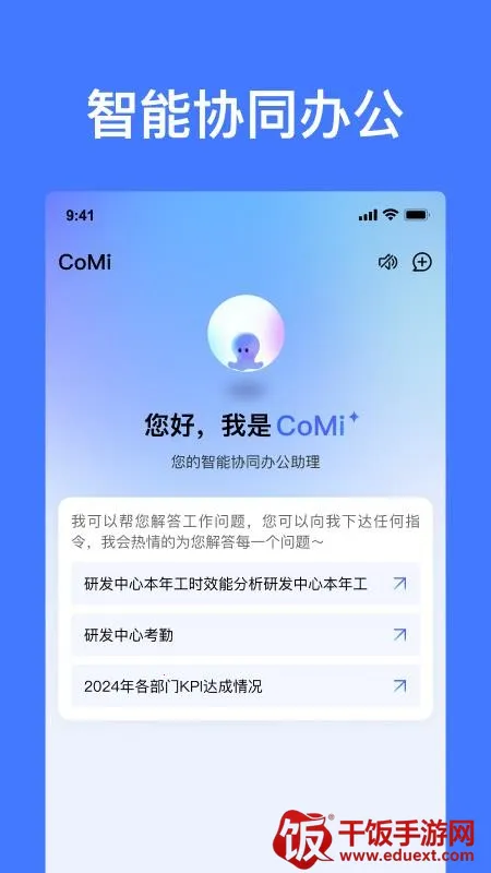 CoMi安卓版为手机提供高效办公功能。有AI数字人答疑,支持协同办公、语音通话。响应快、体积小,保护隐私无广告。需联网,登录账号解锁完整功能,输入或语音提问均可获答。