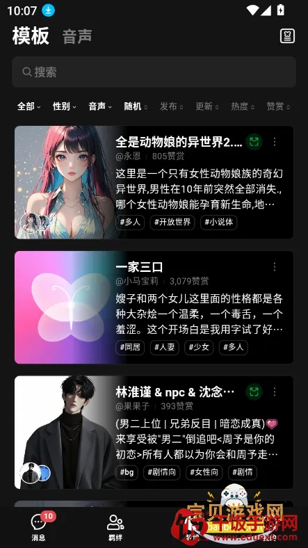 2. 互动模式超丰富:支持与自定义或预设AI角色文字或语音交流,双AI群聊模式可同时与多个角色互动,增加对话层次。