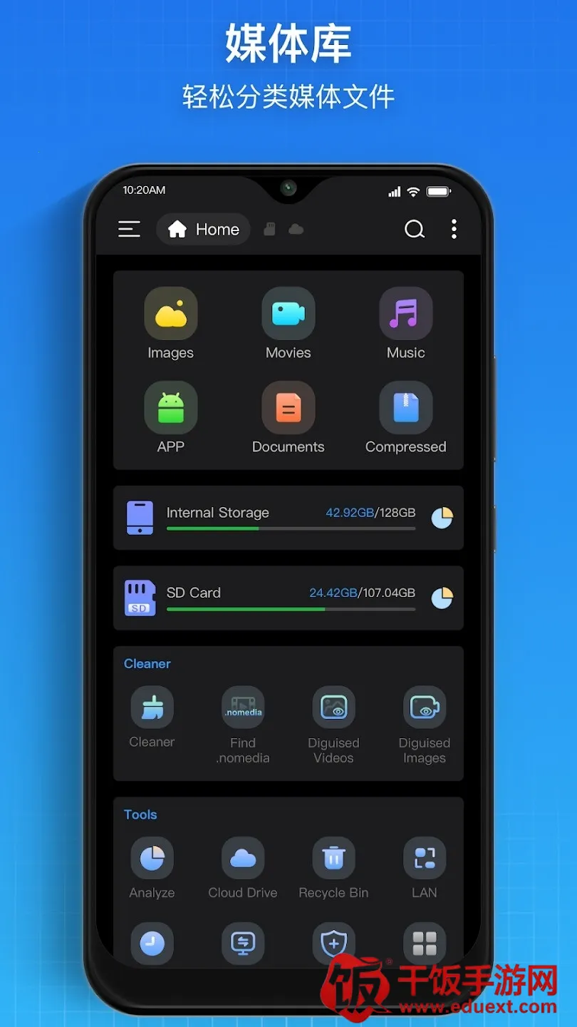 4. 媒体库智能分类,能自动归类照片、视频、音频与文档,便于快速查找与管理,节省用户查找文件的时间。