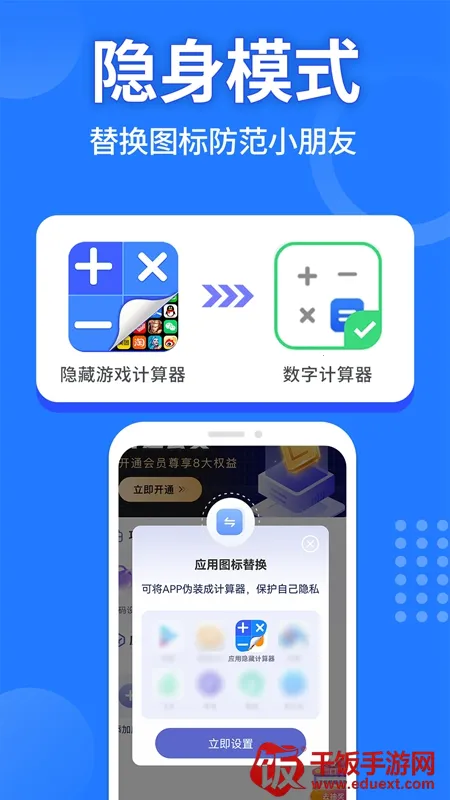 想找一款能保护隐私又没广告、不用会员的应用隐藏软件吗?应用隐藏计算器就是你的理想之选!它能帮你把不想让别人看到的应用、游戏、照片等统统藏起来。输入密码后,这些才会显示,超安全。而且它还能伪装成普通计算器,输入数字安全码就能进入隐藏空间,实现 app 和图片隐藏,别人根本发现不了。