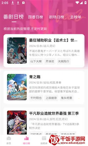 鸭梨鸭梨是一款超棒的动漫追番软件。它功能强大,能满足你对动漫的各种需求。这里资源超丰富,有巨大的动漫资源库,涵盖各种类型动漫。画质清晰,播放流畅不卡顿。支持投屏到电视观看,还能离线下载,没网也能看。会根据你的观看偏好个性化推荐,让你发现更多喜欢的动漫。能和其他用户交流分享有趣情节,互动超欢乐。界面美观,搜索速度快,找动漫超方便。每日更新热门番剧,还有更新提醒,不会错过任何一集。无广告干扰,给你纯净的追番体验。无论是想看热门新番还是重温经典,鸭梨鸭梨都能轻松搞定,快来下载享受精彩动漫世界吧!