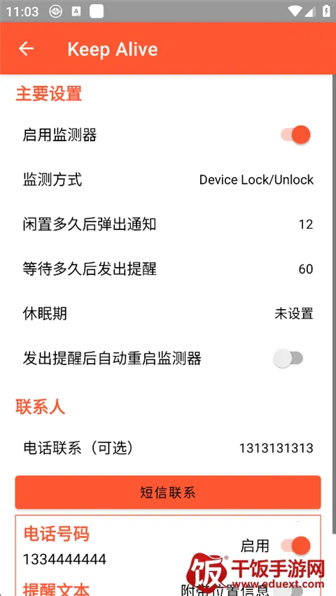 KeepAlive是一款为独居人士等打造的安全监测软件。能自动检测手机使用情况,长时间不用会向紧急联系人发求救信号。可设多个联系人,自定义警报,还有休眠期设定,功能免费,电量低也能发信息,操作简便。