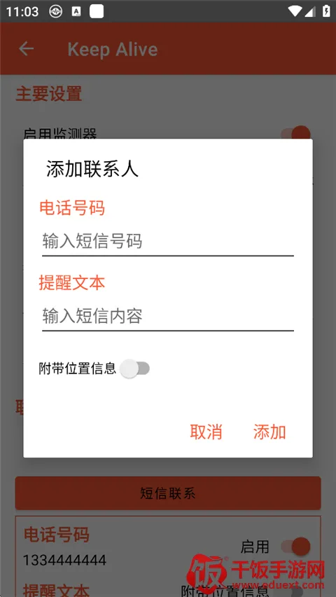 你是否想知道“keep alive意思是什么”?KeepAlive这款软件就能帮到你!它是一款专为独居人士、行动不便者等打造的安全监测软件。当你长时间不使用手机,它会自动检测手机使用情况,若判定需要发送求助信息,就会向紧急联系人发出求救信号。使用时,进入KeepAliveApp,授予权限后点击右上角三点标识,选择设置,点击启用检测器,设置相关通知时间等。它亮点多多,所有功能免费,手机电量极低时也能发求助短信,还能自定义警报信息,支持多个紧急联系人设定。软件特色鲜明,能监测手机使用情况,休眠状态下也可设定,睡眠时不弹出提醒通知。有了它,独居人群、户外工作者等在遇到意外时能及时获得帮助,家人也能更安心,真的非常实用!