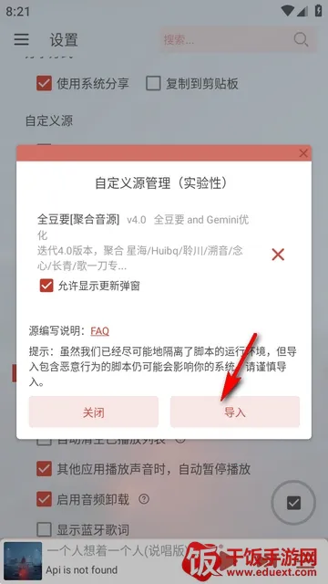 3、选择导入源,在特别说明中下载好音乐源后,导入到软件中。