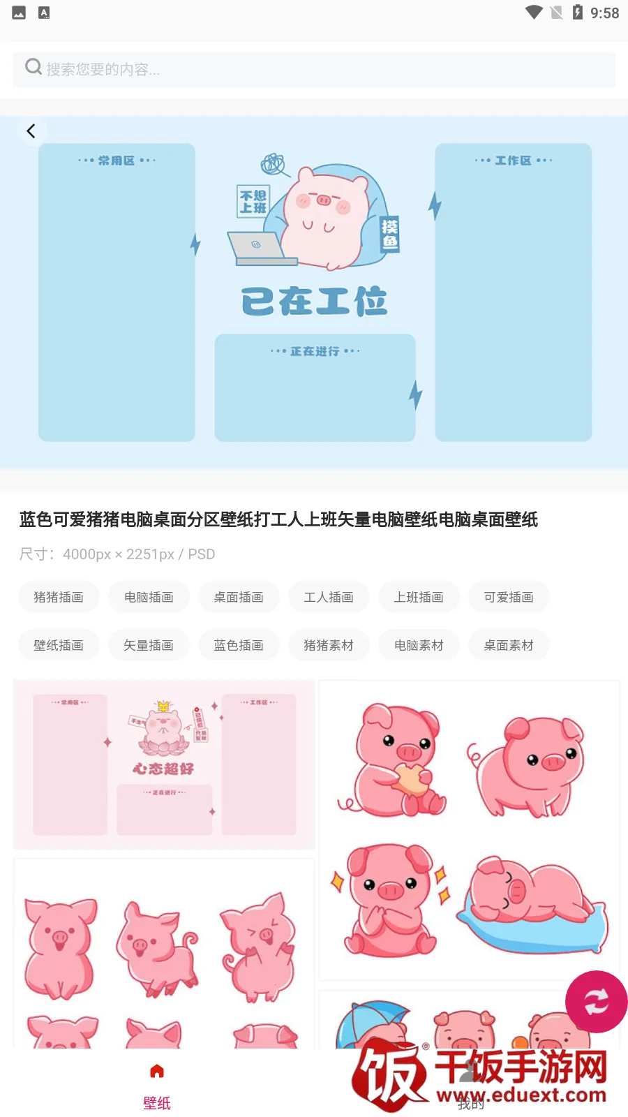 2. 支持自由切割、旋转、调整尺寸,还能输入关键词或类别智能搜索,方便找到所需壁纸。
