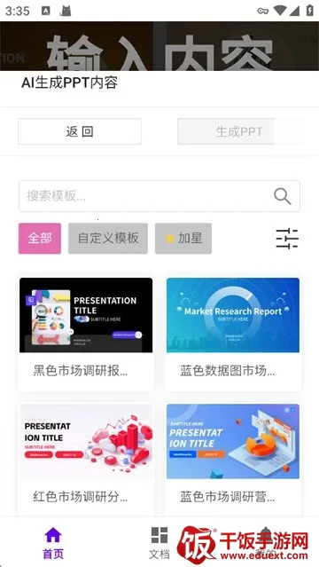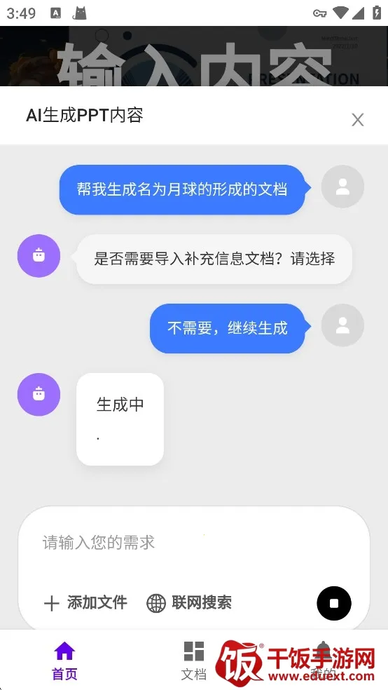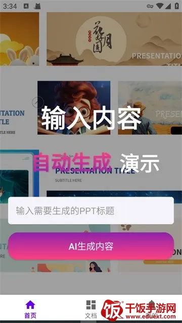1、输入标题,AI直接生成PPT,自动配图、自动排版