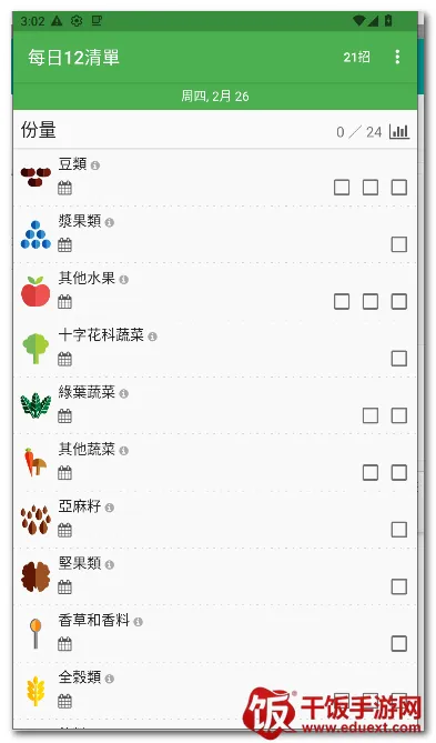 每日12清单安卓版手机软件,专注食物清单服务。基于多年研究,列出健康日常饮食重要食物清单,详细介绍每种食物及每日摄入量,其创作者相关收益还会捐赠给慈善机构。