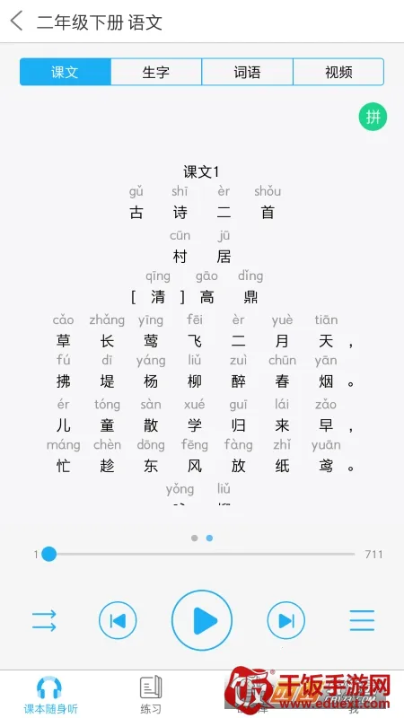 这款学习软件相当不错。它与现行语文英语两科课标教材内容完全同步,运用现代化网络技术,将文字、声音、图像、动画等多种信息融为一体。能为学生提供字词学习、在线练习、人机对话、课文朗读、口语评测等服务,有效提高听说能力;为教师提供作业发布、成绩统计等服务,助力提高教学效率。