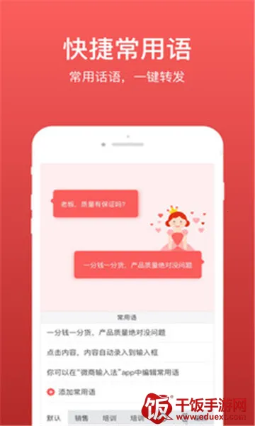 3、满足微商需求:是微商专用输入法,有适合微商推广的字体、符号,可设置常用语,还有朋友圈文字不折叠功能,助力微商更好地进行营销。
