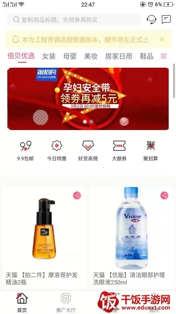 3. 省钱福利多:作为省钱的手机购物平台软件,有各种优秀优惠券,提供天猫淘宝优惠券、限时抢9.9包邮等多种省钱购物方案,专人挑选超值热门商品,还有多项收入来源,自用省钱还能发圈赚佣金。