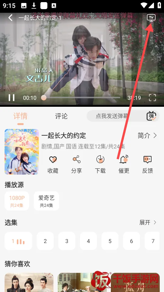3、接着点击下方箭头所指的图标,还可以实时发送弹幕哦。