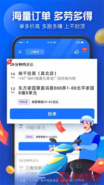 蜂鸟骑士官方最新版是一款为外卖骑手量身打造的高效接单与派送管理平台,它能够提升骑手的工作效率和服务体验。无论是新手骑手还是资深配送员,蜂鸟骑士专送版 app 都是你高效可靠的工作助手。这里每天都有大量外卖订单等你来接,接单越多,赚的越多,在这里只要你肯努力,就不怕赚不到钱,工作时间还能自己安排。它由全国最大网上订餐平台饿了么出品,依托饿了么平台海量订单,多劳多得不封顶,工作稳定奖励多样。完成认证的用户均可注册成为专业的骑手从而迅速接单,订单资源丰富多样也支持自定义筛选,能找到高价值订单。送货过程会提供专业的导航服务确保规划更快的路线,完成订单后所有配送费会统计到钱包可提现。总之,对于外卖骑手来说是个不错的选择。