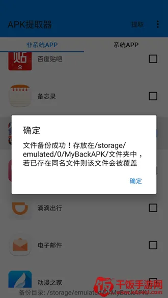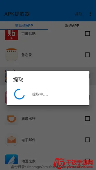 2. 进入主界面后,软件自动加载手机中全部应用列表,涵盖“我的应用”、“系统应用”以及“APK文件夹”等分类,便于快速定位目标:
