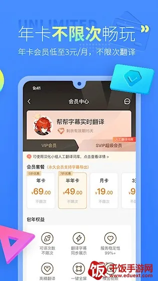 - **不限次畅快使用**:开通天卡、月卡、年卡均可不限次翻译,畅享影视资源,无忧观看。