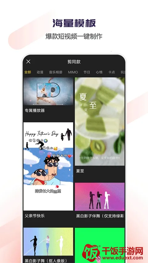 1. 海量模板:拥有海量模板,能让用户轻松制作大片,快速产出精彩视频。