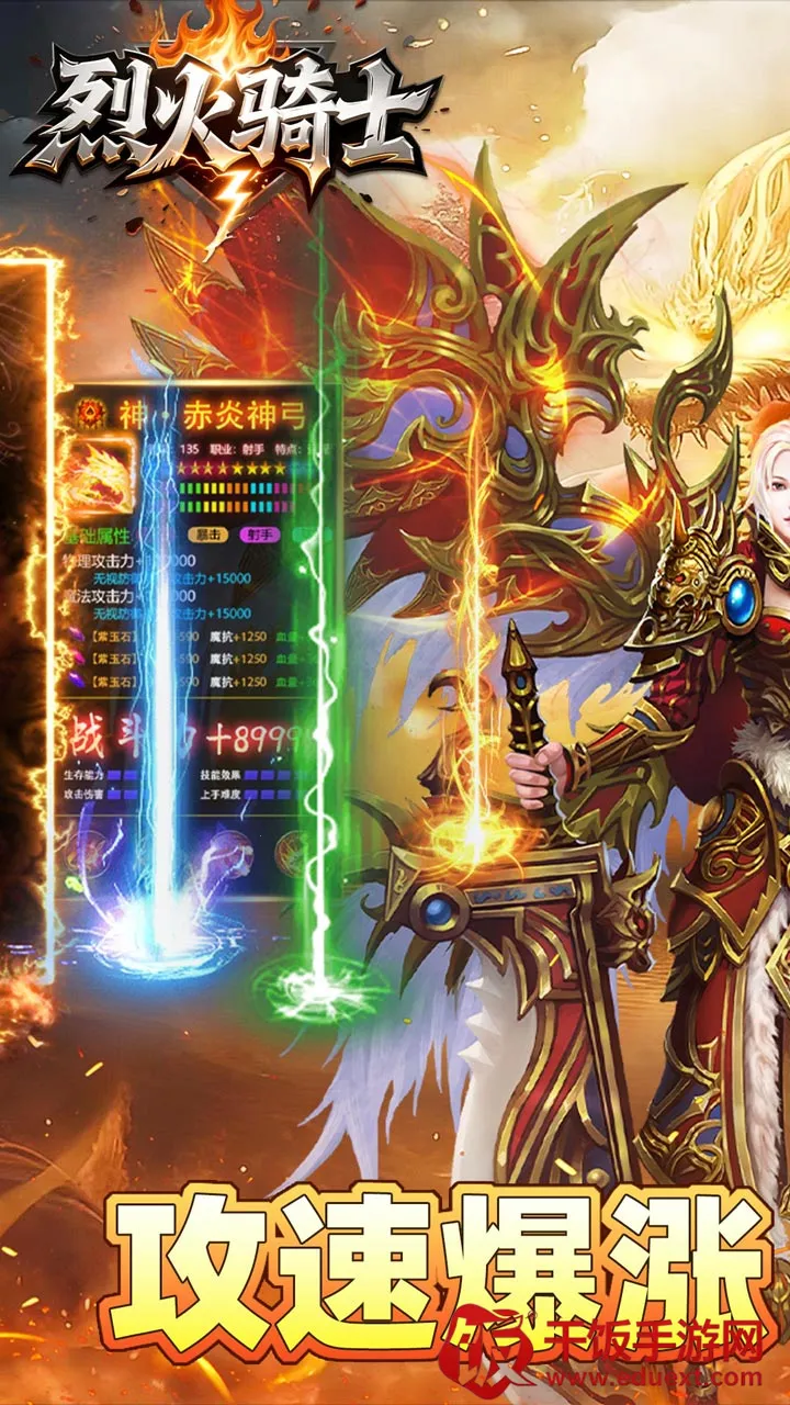 烈火骑士(传奇手游玩法多)核心特色:游戏玩法丰富多样,勇闯天关、封神棋局、行会争霸、激情跨服等应有尽有。上线即送 1888 红包,还有自动拾取自动回收功能。打怪掉红包,可免费白嫖顶级赞助和充值货币。加入合击二段伤害玩法,让合击效果更加强大。玩家自由度极高,能通过参与活动获取各种时装、光环、足迹、称号等。技能特效炫酷,多种群切效果随意切换,带你领略精彩战斗风采。