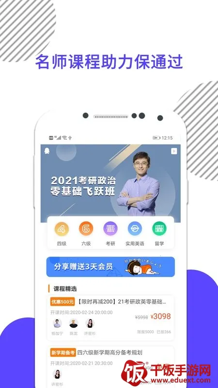 2. 课程超丰富,搜索便学习:带来的课程丰富多样,有考研学习需求可直接搜索课程进行线上学习。
