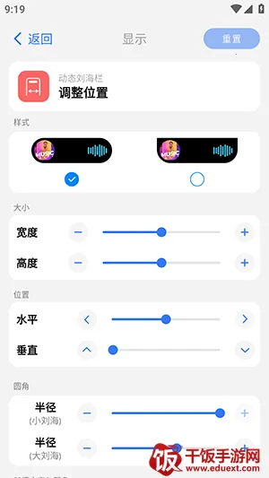 2. 自由调节灵动岛样式:可通过喜好设置不同的宽度和高度,对于灵动岛的大小,这个软件也可以自行调节,还能打造专属风格。