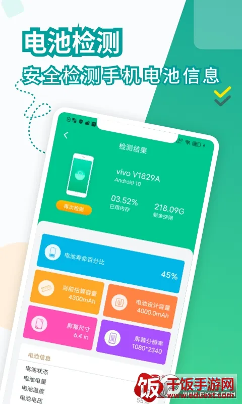 3. 全面电池信息呈现:能清楚展示电池电量、状态、温度、技术、健康、电压等信息,帮你随时了解电池状况。