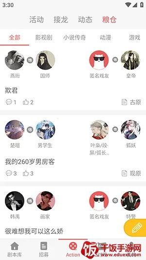 2、激发创作灵感:软件设有精神粮仓,可欣赏优质戏文作品,激发创作灵感。还有丰富活动,参与能赢取限定徽章、A钻奖励,在兑换商城兑换精美装扮。
