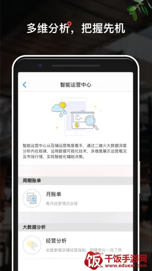 1. 多维度数据洞察:通过大数据分析全方位展示店铺情况,涵盖营业、原料、商品等50种专业报表,助您洞察市场行情,实现智能化辅助决策。