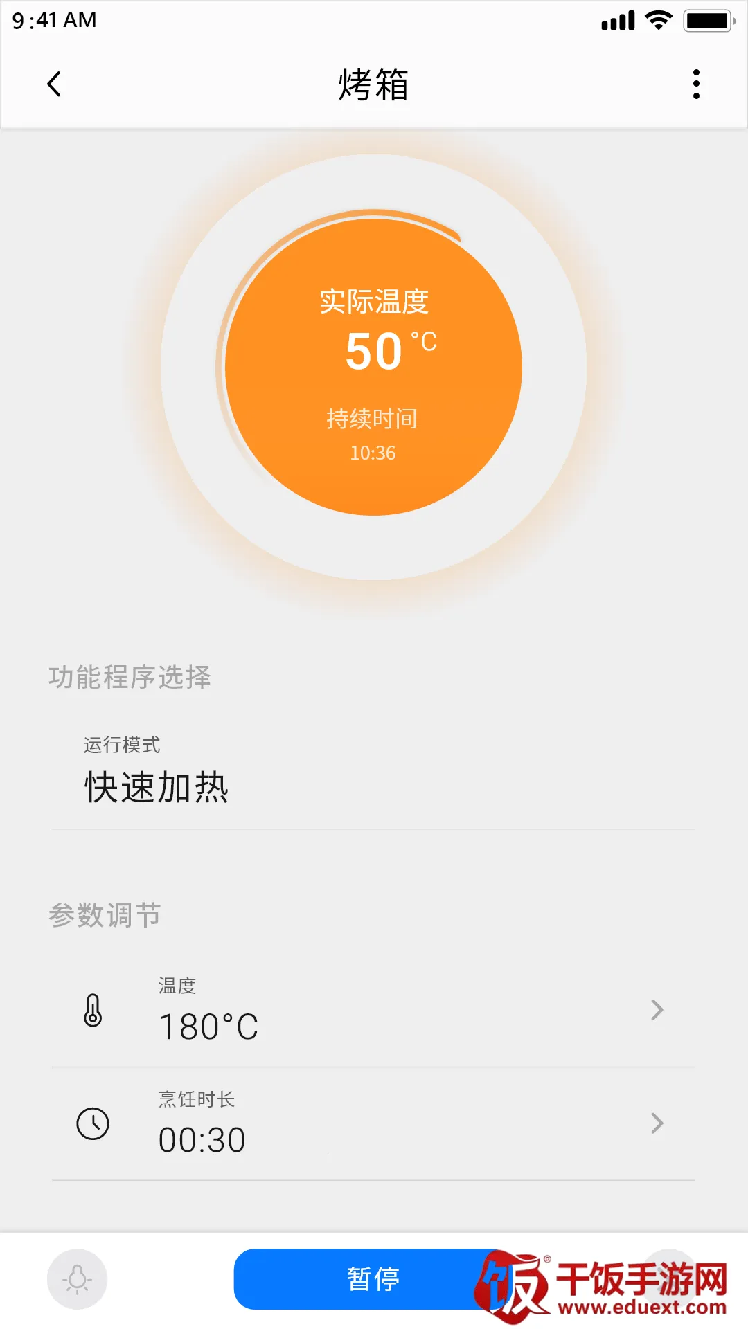 2. 烹饪参数自动设:当用户选定菜谱,如烤鸡翅时,APP会自动为用户设置好烤箱的温度、时间等参数。