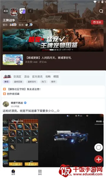 游戏专区超棒,能和大量同好分享游戏日常、讨论热门话题、找攻略答案。不管是新手小白还是游戏大佬,都能汇聚于此。而且制作组成员也在,玩家能直接和官方沟通,让官方听到你的声音,反馈会被重视,说不定还有直接回应呢!查找攻略也方便,打开app,选感兴趣的游戏,在专区点攻略就能看到全部教程,还能筛选。总之,摸鱼社能全方位满足游戏玩家需求,提升游戏体验,快来加入吧!