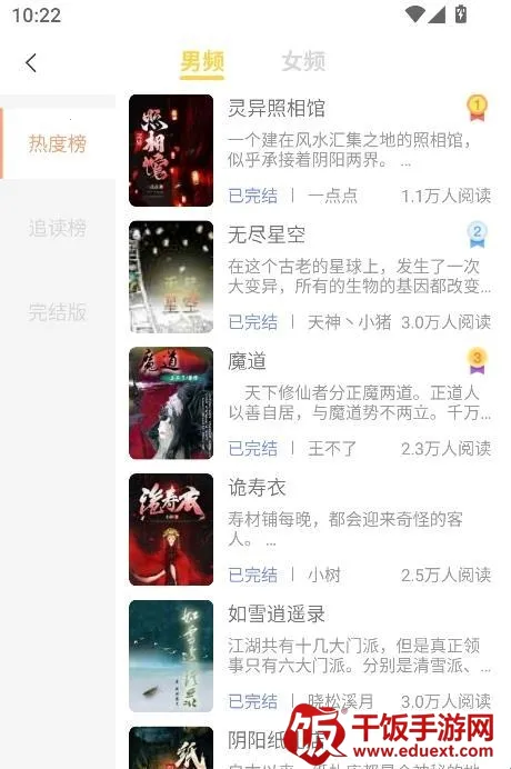 2、或者点击【排行榜】进入,可以查看热榜,追读榜,完结榜等,根据榜单筛选资源
