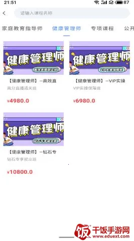 1. 提供多项职业发展课程资讯,以智能线上学习平台为主,方便利用碎片时间获取知识,涵盖心理咨询师、家庭教育指导师、健康管理师等课程。