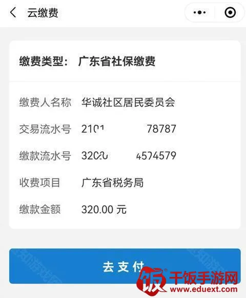 7、确认缴款信息无误后,请点击【去支付】