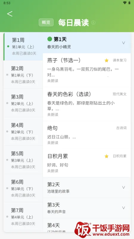 3. 智能功能:智能听写按年级与课文选字词,一键听写支持拍照录入与智能批改,巩固书写记忆;每日晨读培养语感与理解力;古诗词背诵覆盖小学必背,有进度记录与激励机制。