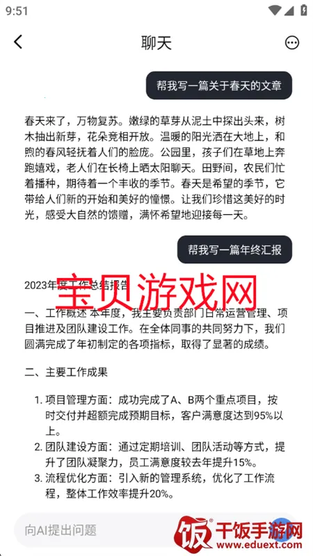 5、进入聊天页面,输入你想了解的内容可以快速获取回答